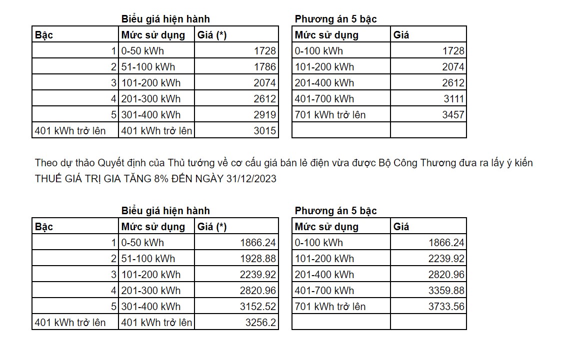 GIÁ BÁN LẺ ĐIỆN CHO CÁC NGÀNH SẢN XUẤT chưa có VAT 8% 2023