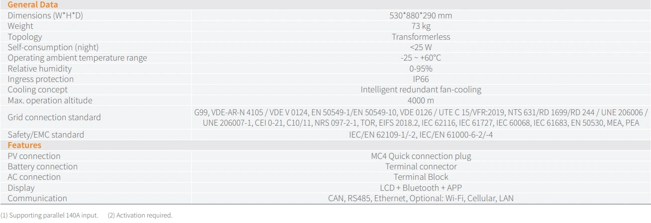 - Vận hành hòa lưới và độc lập với tối đa 6 thiết bị song song