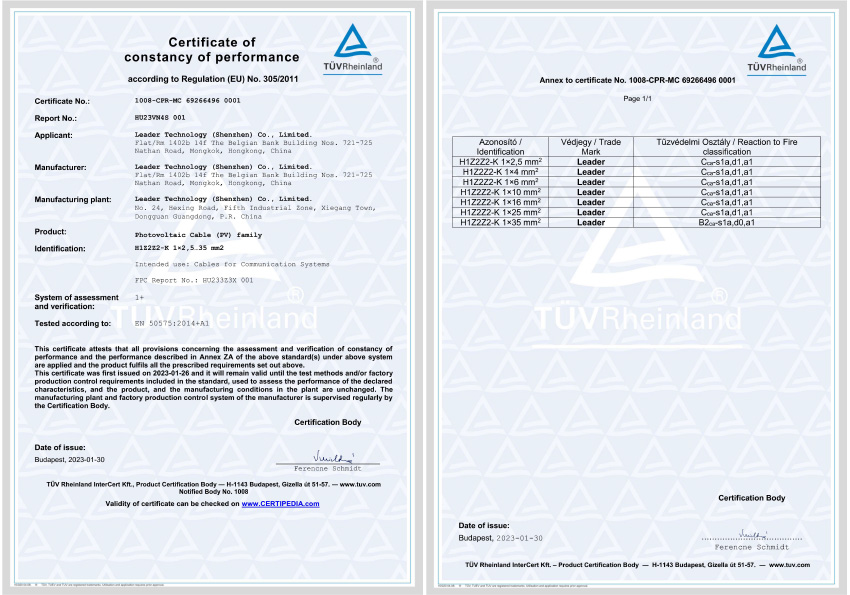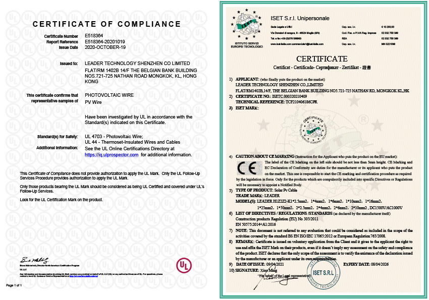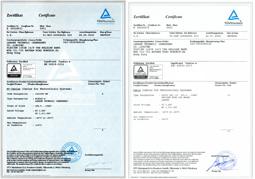 | Fire Performance | Flame non-propagation based on UNE-EN 60332-1 and IEC 60332-1 | Certification | TUV/UL/RETIE/IEC/CE/RoHS |