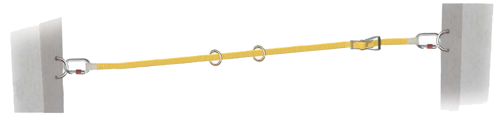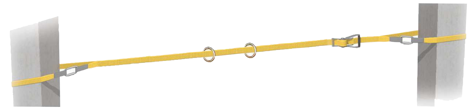 Dây cứu sinh tạm thời làm bằng lưới từ 2 đến 20 mét, cho phép 2 người dùng được bảo vệ cùng lúc, rất dễ lắp đặt nhờ bộ căng