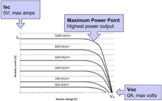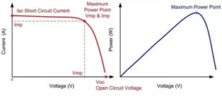 Khi sử dụng một bộ tối ưu công suất theo dõi điểm công suất tối đa (MPPT) thì đây là điểm mà các thiết bị MPPT sẽ cố gẵng để giữ mức điện áp và cường độ dòng điện tối đa hóa công suất điện phát ra