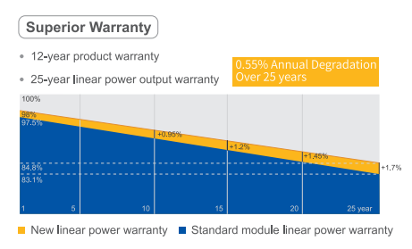 Bảo hành 12 năm sản phẩm và 25 năm hiệu suất đầu ra