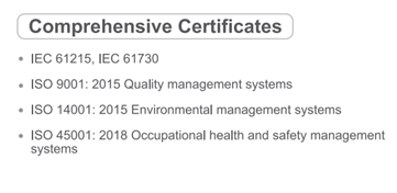 - Tiêu chuẩn IEC 61730 (Tiêu chuẩn về an toàn điện cho tấm pin mặt trời)