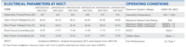 - Nhiệt độ của cell tấm pin khi hoạt động trong điều kiện NOCT (Nominal Operating Cell Temperature – NOCT). Càng thấp càng tốt vì điều này có nghĩa là tấm pin sẽ mát hơn khi đặt dưới ánh nắng mặt trời ➥ 45 độ C +- 2. Điều này có nghĩa là có nghĩa là trong điều kiện NOCT cell của tấm pin sẽ ở nhiệt độ 43 độ C đến 47 độ C