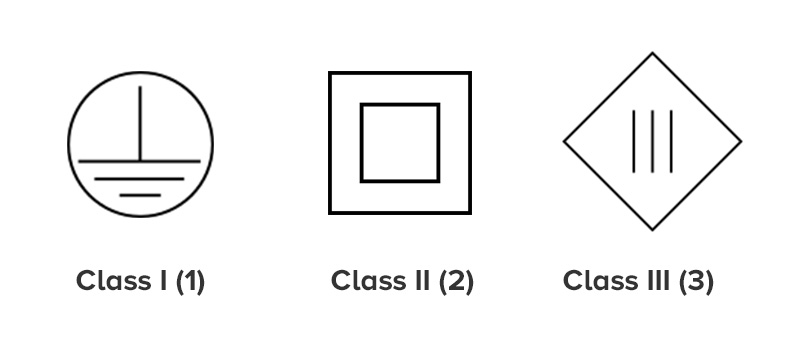 ➥ Class II: nơi bảo vệ người dùng khỏi nguy cơ bị điện giật thông qua hai cấp độ cách điện (cách điện kép hoặc gia cố) mà không cần tiếp địa.