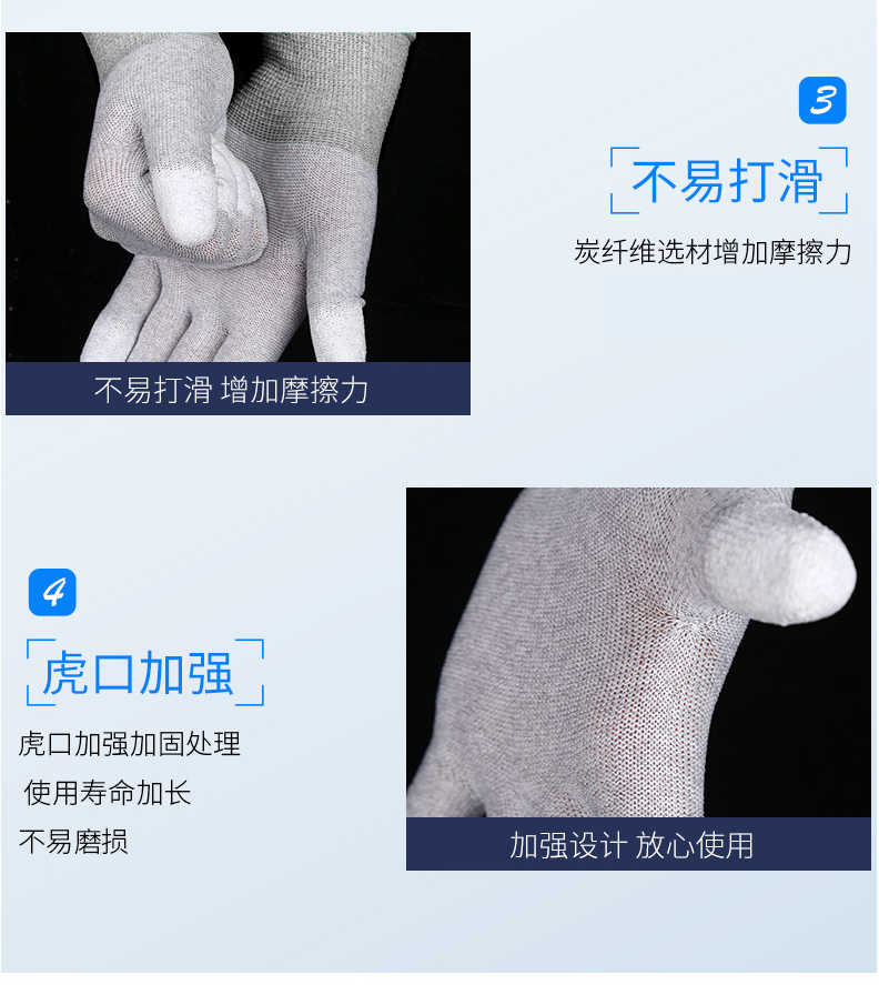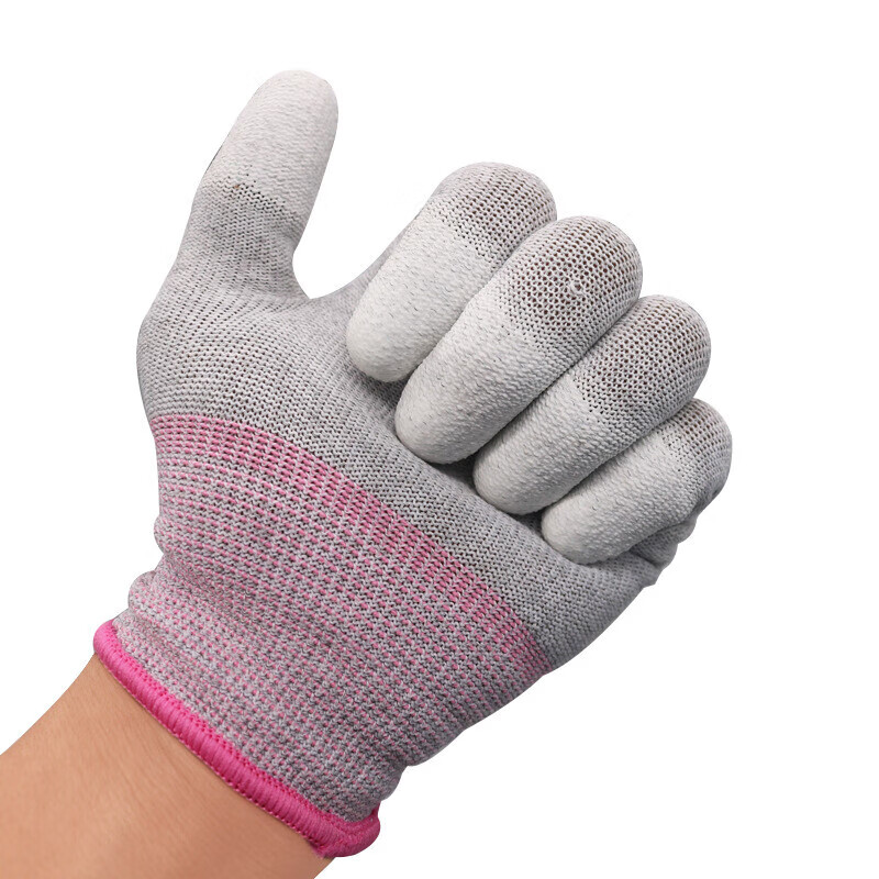 Chất liệu: Sợi nylon pha carbon chống tĩnh điện, phủ PU ở đầu ngón tay giúp tăng độ bám, chống trơn trượt và bảo vệ linh kiện điện tử khỏi phóng tĩnh điện.