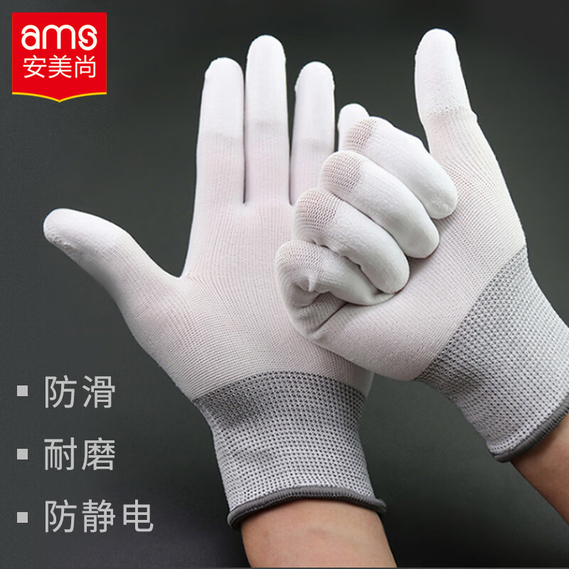 Găng tay Ams vải Poly phủ PU ngón tay model A551 (gói 10 đôi)