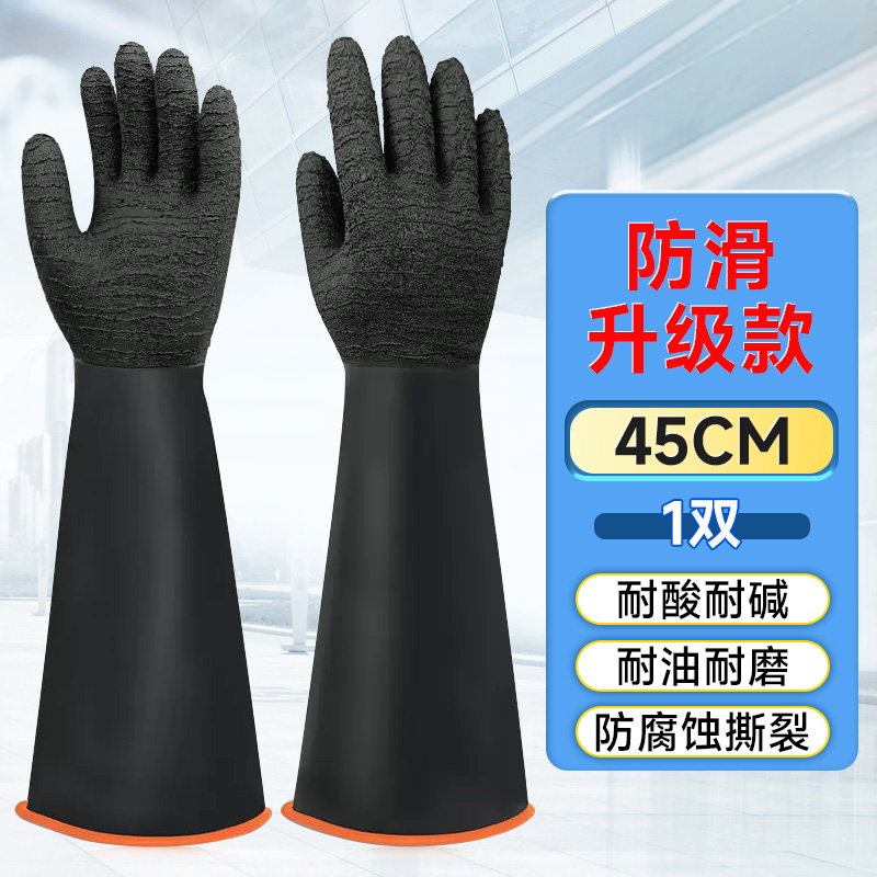 Găng tay cao su chống axit và kiềm hóa chất chống trơn có vây
