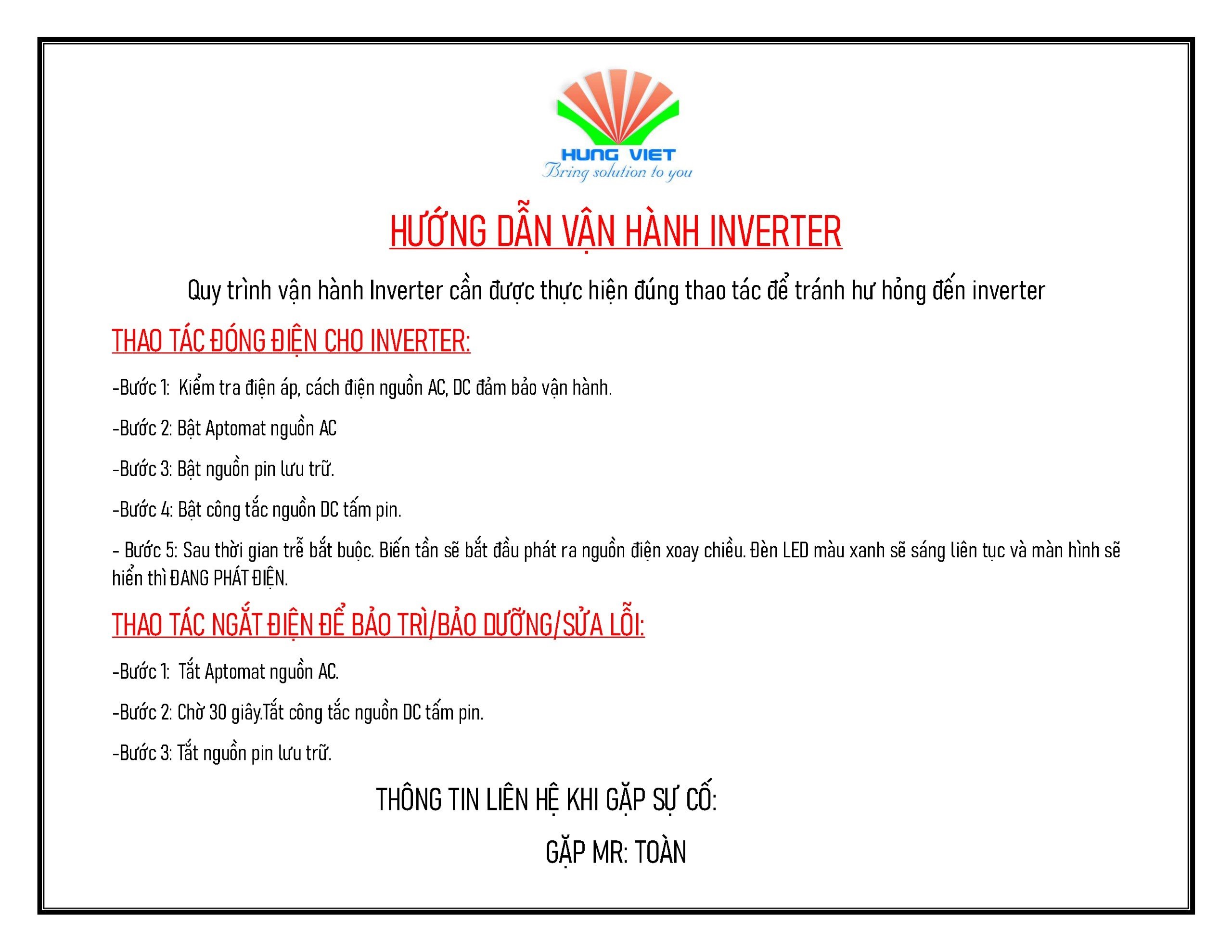 Hướng dẫn vận hành Inverter Hybrid