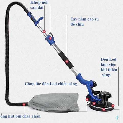 Máy Chà Tường – Máy Chà Nhám Cán Dài QGB 230E Có Hút Bụi, Đèn Led Làm Việc Nơi Thiếu Sáng.