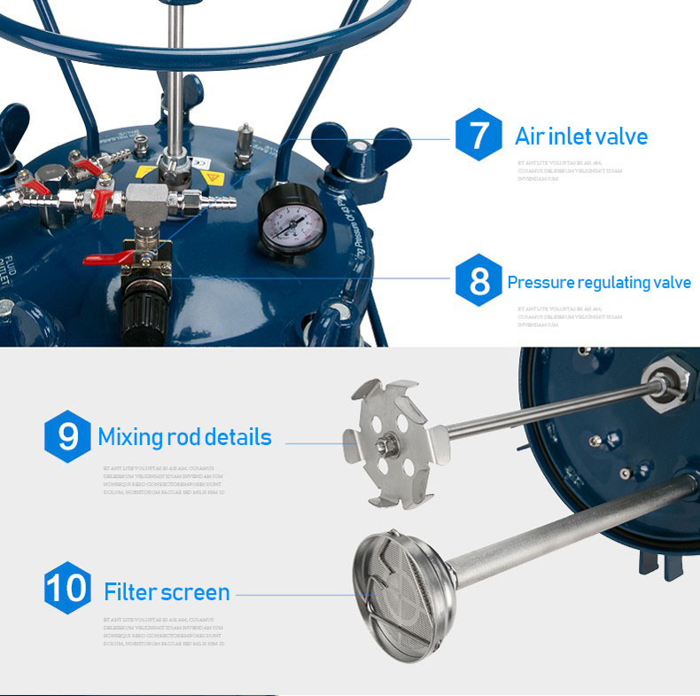 - Tất cả các nồi trộn sơn đều có tác dụng đựng sơn, dung dịch, khuấy đảo sơn và đẩy sơn lên súng.