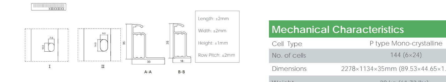 | Kết nối: | MC4 tương thích, TUV 1×4.0mm2, TUV 1×4.0mm2 (+): 400mm, (-): 200mm |