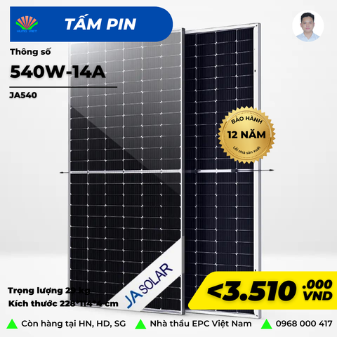 Tấm pin năng lượng mặt trời JA Solar 540W, Model JAM72S30 540/MR