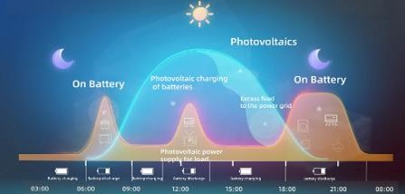 Nhưng thêm vào đó, lượng điện tải tiêu thụ không hết sẽ được ưu tiên sạc vào ắc quy lưu trữ. Từ đó bù đắp cho việc không có điện mặt trời vào ban đêm. Nguồn năng lượng này cho phép hệ thống này hoạt động như một nguồn cung cấp dự phòng, cung cấp năng lượng ổn định cho hệ thống vào buổi tối hoặc khi mất điện lưới.